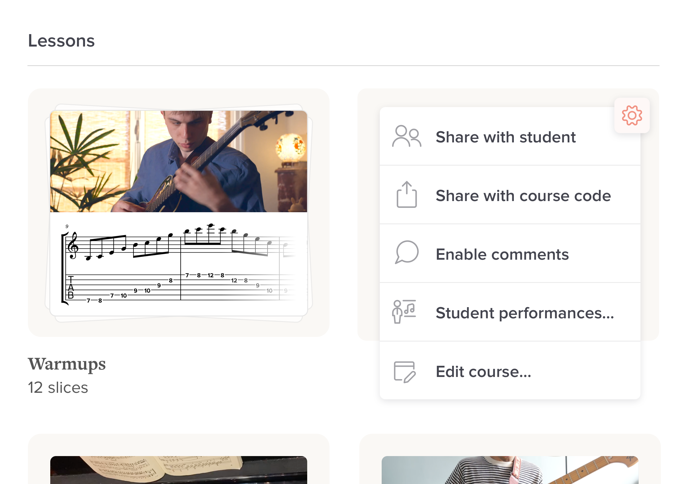 Our “private courses” system lets you bundle multiple lessons together and grant access to specific students. These can be prerecorded video lessons, audio lessons or simply pieces of music notation.
