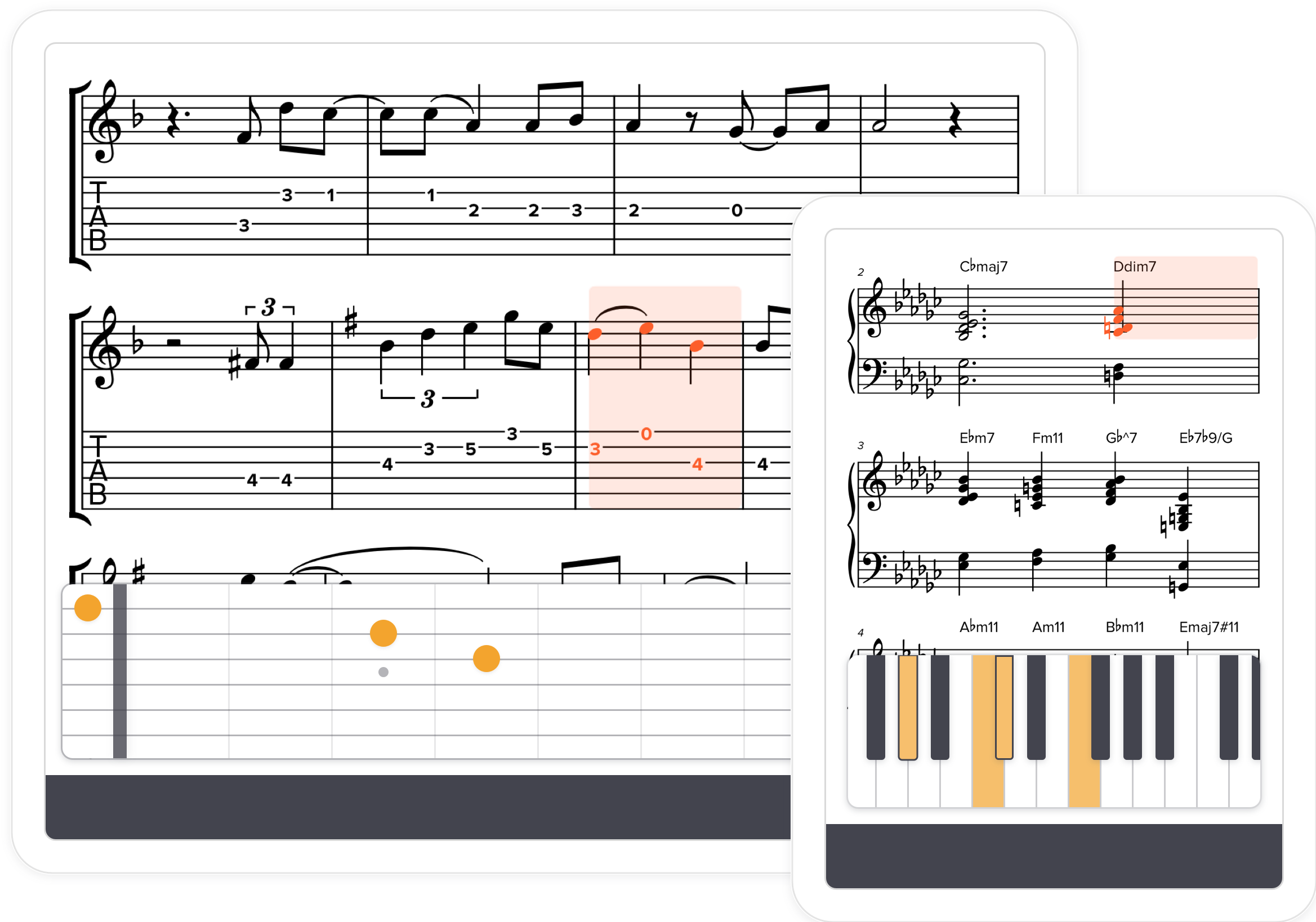 And for those of you who “think in tab” rather than notation, our tab entry is optimized for you. Just enter fret numbers and strings, and we’ll automatically put the notes in.