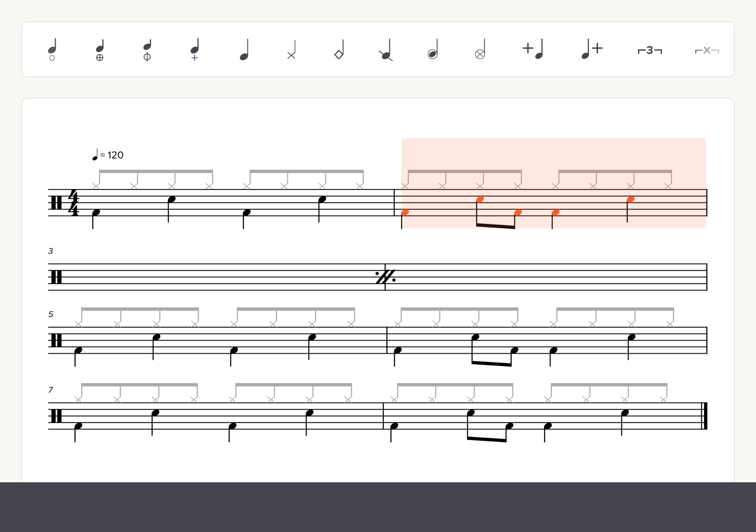 Percussion notation can vary from musician to musician. With Soundslice, you can create a custom percussion map to ensure drums are notated — and played back — exactly as you’d like.