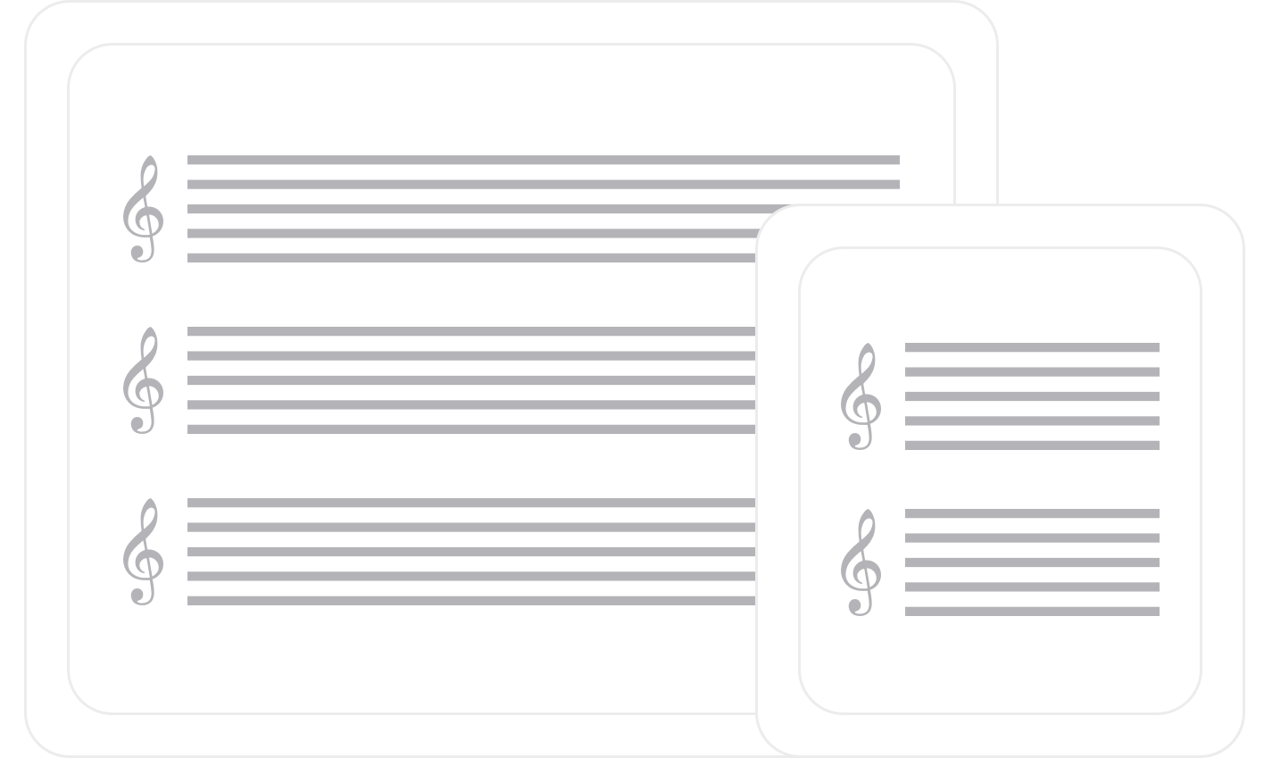Use our import features if you have existing music. Our PDF/image scanner works on photos or PDFs, and we also read some native file formats (MusicXML, Guitar Pro and more).