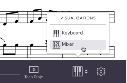 The Mixer is available now on every Soundslice score. You’ll find it in the “Visualizations” menu — the menu that also contains the Keyboard, Fretboard and Waveform buttons.