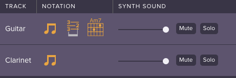 - Quickly mute or solo an audio track you’re practicing (if you’re using our synth player, as opposed to an actual audio/video recording).