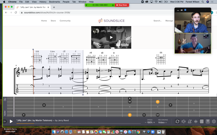 “I’ve only been using Soundslice for a couple of weeks…but I’ve already gotten great feedback from students. The tablature functions are very nuanced, so I’m able to convey all the little slurs and intricacies of a piece to a student. When you couple that with a loopable, video performance with adjustable tempo, students have everything at their disposal to really master songs…maybe even more so than before.”