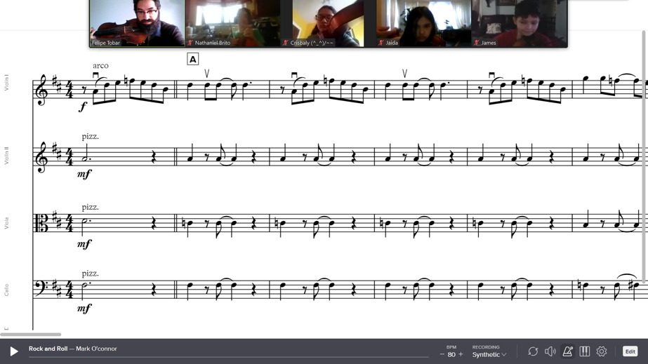 During these rehearsals, Felipe uses the Soundslice notation editor to make annotations — like bowing and dynamics — on the fly for all students to see. (Genius!) When asked to elaborate on the “Why?” of running group lessons despite the obvious logistical issues, Felipe didn’t blink to suggest that the trouble was worth it.